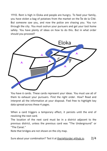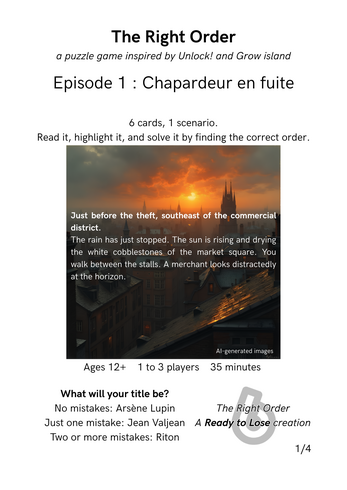 The Right Order is a print and play escape game inspired by Unlock! and the video game Grow Island.