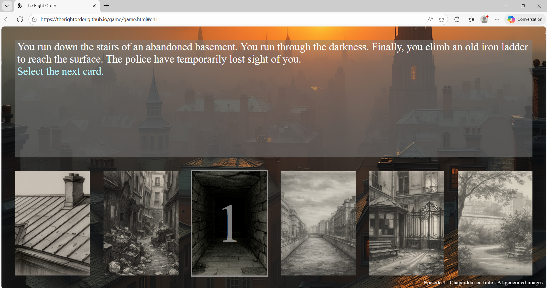 When players think they have found the only correct combination (among the 720 possible arrangements of the 6 cards), they must go to The Right Order GitHub page to test it. If the combination is incorrect, they must imagine and test another possibility until they find the right one.
